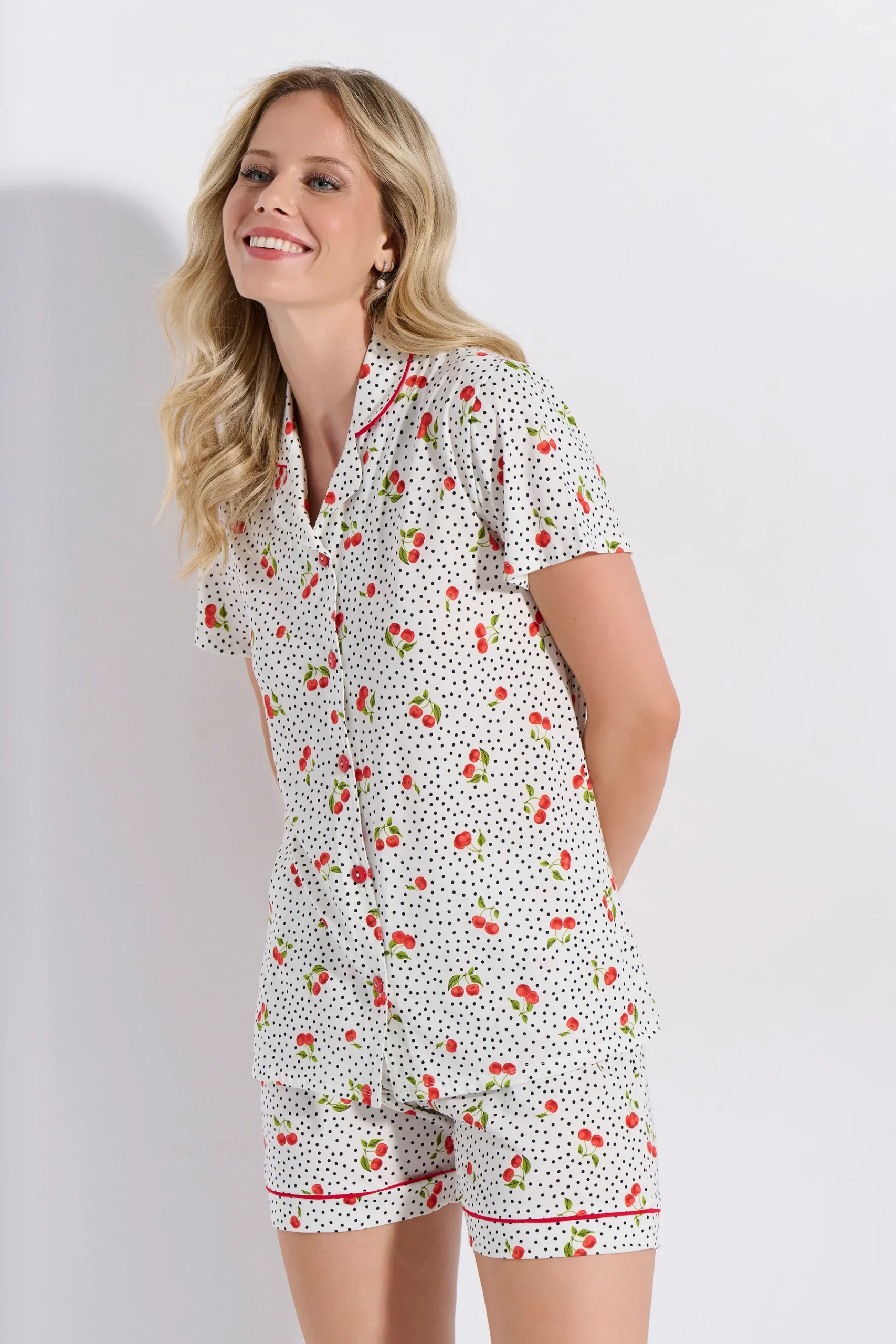 Πυτζάμα Κουμπωτή Σορτς Κερασια