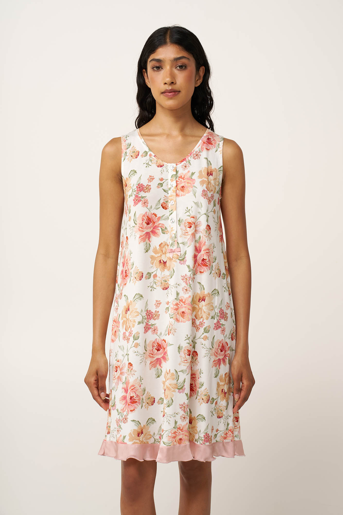 Micromodal Φλοράλ Νυχτικό με Πατιλέτα