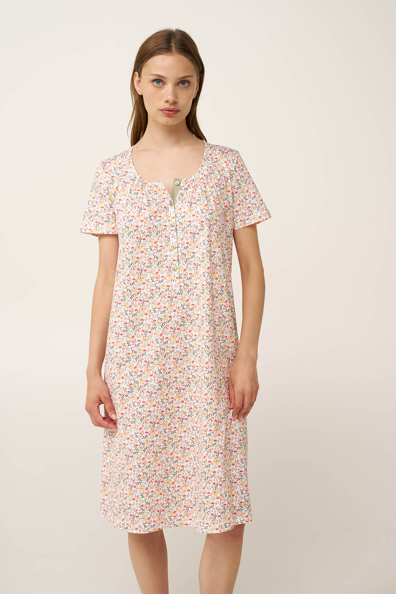 Φλοράλ Βαμβακερό Νυχτικό με Πατιλέτα