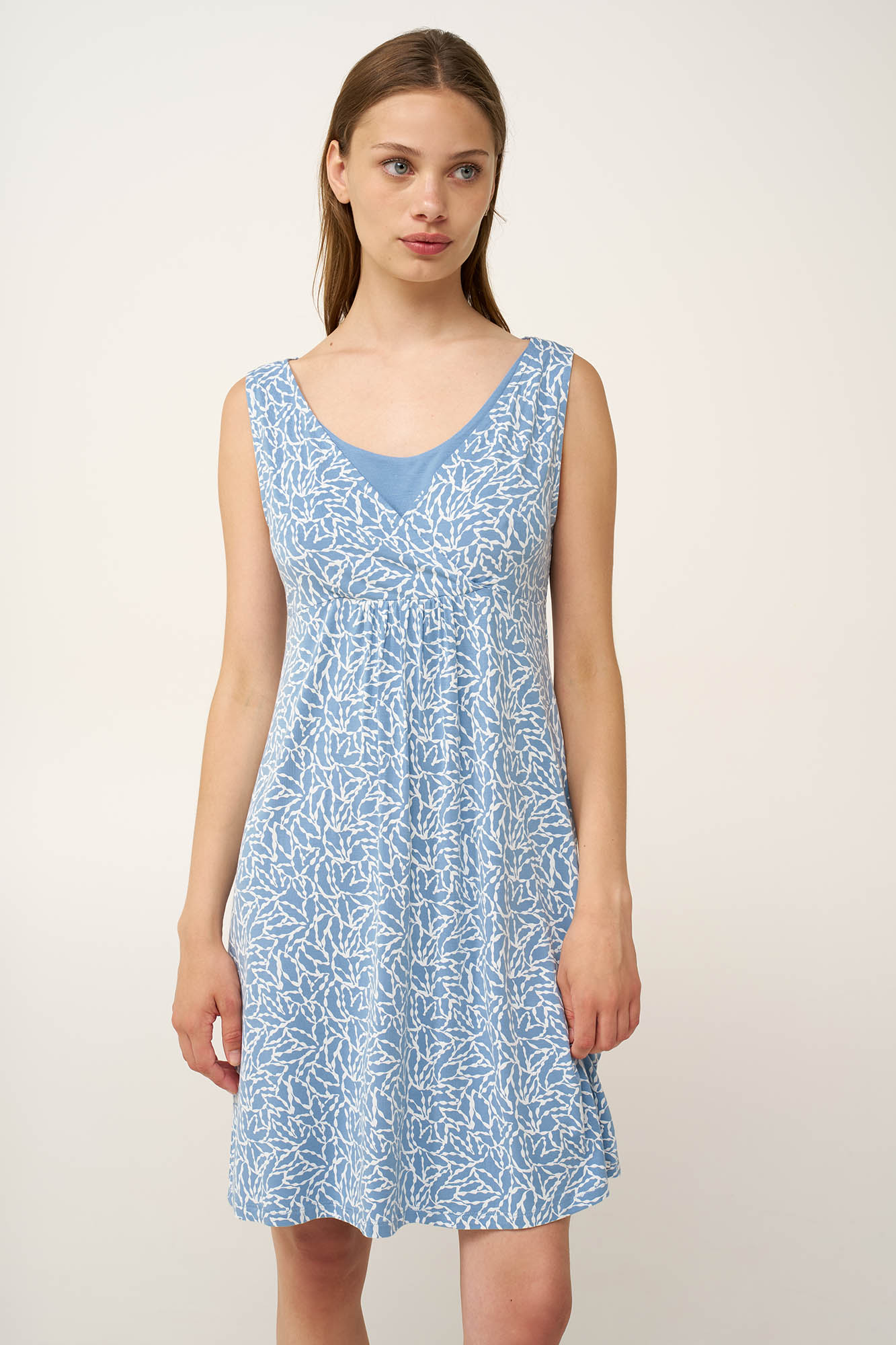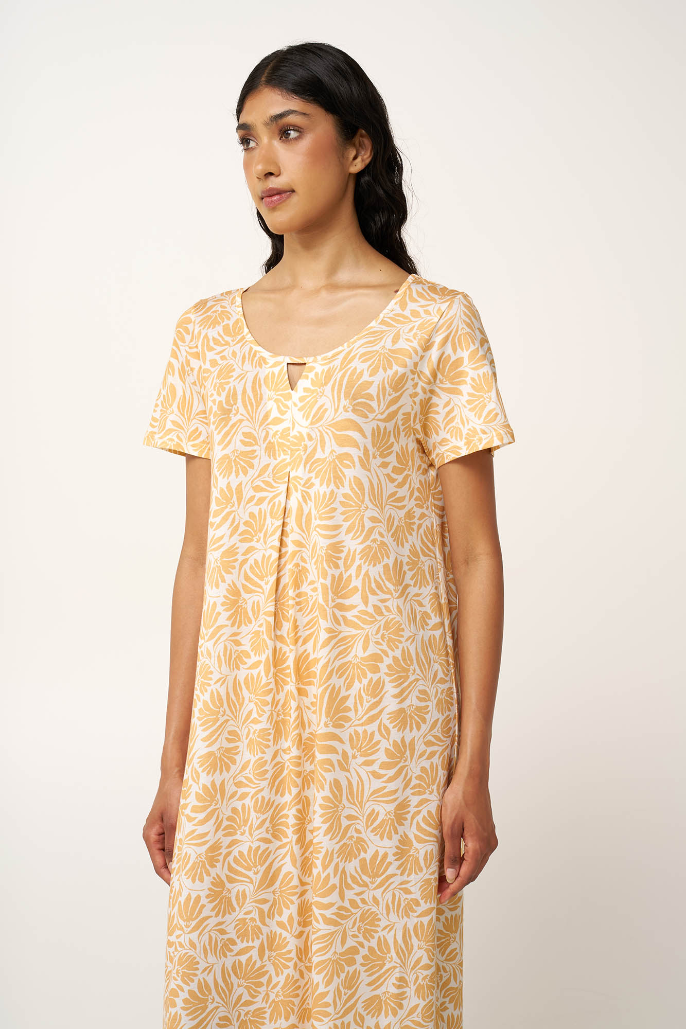 Φλοράλ Νυχτικό Cotton-Modal με Πιέτα