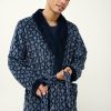 Επιλέξτε μια μακριά σταυρωτή ανδρική ρόμπα σε γεωμετρικό μοτίβο για να συνοδέψετε τις αγαπημένες σας πυτζάμες. Ένα κλασικό σχέδιο που κλείνει με ζώνη μπροστά, έχει φαρδύ μονόχρωμο πέτο και πρακτικές τσέπες που σας επιτρέπουν να έχετε κοντά σας προσωπικά αντικείμενα. Κατασκευασμένη από εξαιρετικά απαλό fleece θα σας κρατήσει ζεστό για να απολαύσετε κάθε στιγμή στο σπίτι.