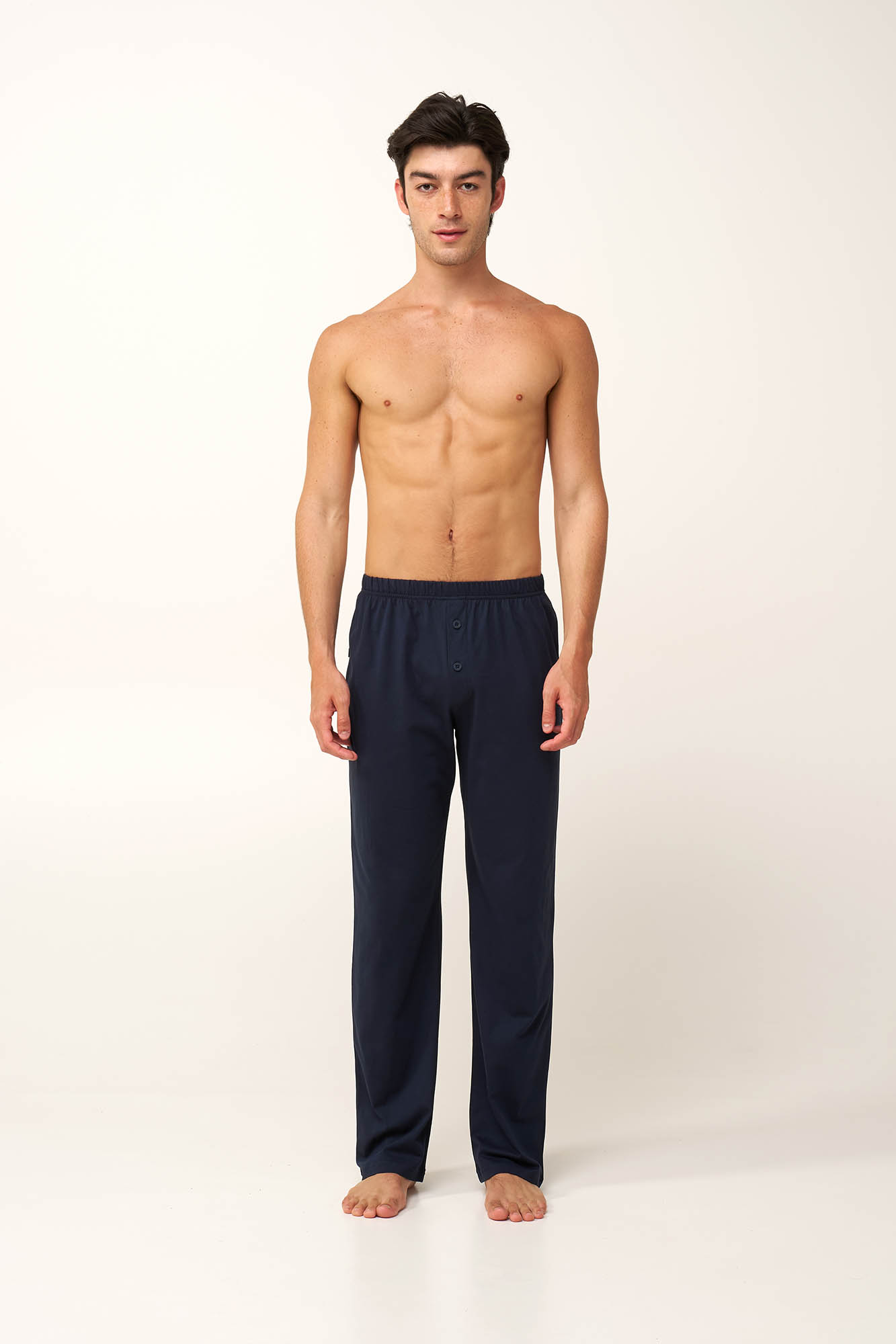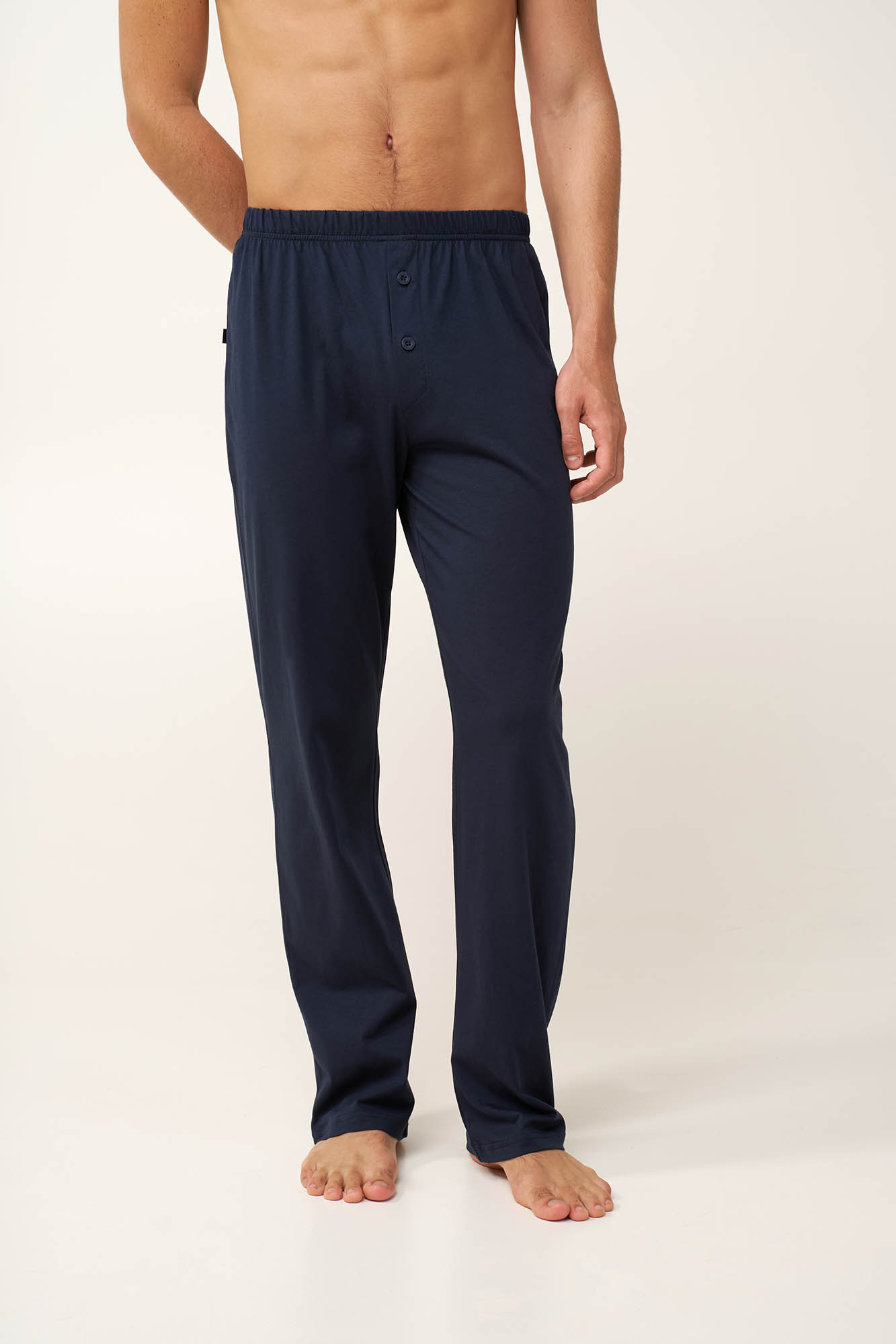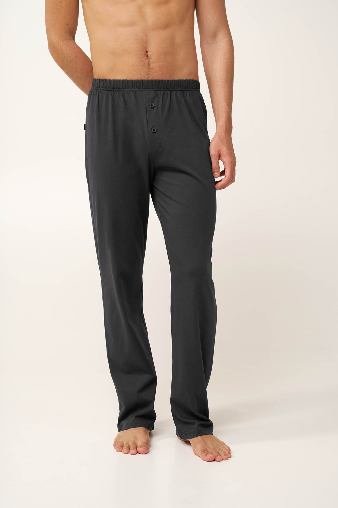 Επιλέξτε ένα ανδρικό μακρύ παντελόνι που συνδυάζει κλασικό σχεδιασμό με καθημερινή άνεση. Σχεδιασμένο με κουμπιά στο μπροστινό μέρος, πρακτική πίσω τσέπη και ελαστική μέση που χαρίζει σταθερή και άνετη εφαρμογή. Κατασκευασμένο από 100% βαμβάκι single jersey, το ύφασμα είναι επιτρέπει στο δέρμα να αναπνέει χαρίζοντας απαλή αίσθηση. Φορέστε το μόνο του στο σπίτι ή συνδυάστε το εύκολα με το αγαπημένο σας T-shirt για ένα χαλαρό look.