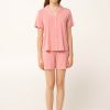 Απολαύστε ήρεμα πρωινά και χαλαρές νύχτες με ένα γοητευτικό σετ γυναικείες πυτζάμες, κατασκευασμένο από εξαιρετικά απαλό LENZING Tencel Modal Micro και elastane, που αγκαλιάζει ευχάριστα το σώμα με δροσερή και ανάλαφρη αίσθηση. Σχεδιασμένο με κλασικό κουμπωτό πάνω μέρος είναι διακοσμημένο με ένα λευκό πουά μοτίβο σε απαλή ροζ απόχρωση. Μια γλυκιά αλλά κομψή επιλογή με διαχρονικό χαρακτήρα, για καθημερινές στιγμές χαλάρωσης στο σπίτι.