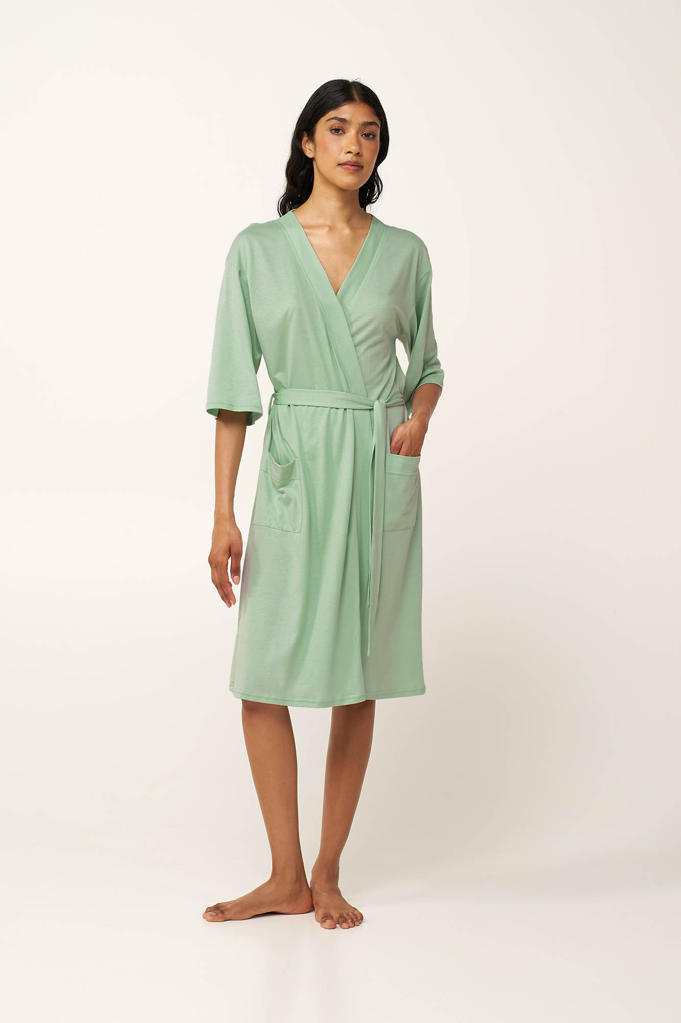 Επιλέξτε μια καλοκαιρινή γυναίκεια ρόμπα από cotton-modal, σχεδιασμένη με έμφαση στην άνεση και την απλότητα. Η μονόχρωμη, σταυρωτή γραμμή της αποπνέει αβίαστη κομψότητα, ενώ τα κοντά μανίκια και η ανάλαφρη αίσθηση του υφάσματος την καθιστούν ιδανική για τις ζεστές ημέρες και νύχτες. Απαλή στην αφή και με χαλαρή εφαρμογή που κολακεύει κάθε σιλουέτα, φοριέται εύκολα πάνω από το αγαπημένο σας νυχτικό και συνδυάζει διαχρονικό στυλ με καθημερινή πρακτικότητα για στιγμές χαλάρωσης στο σπίτι.