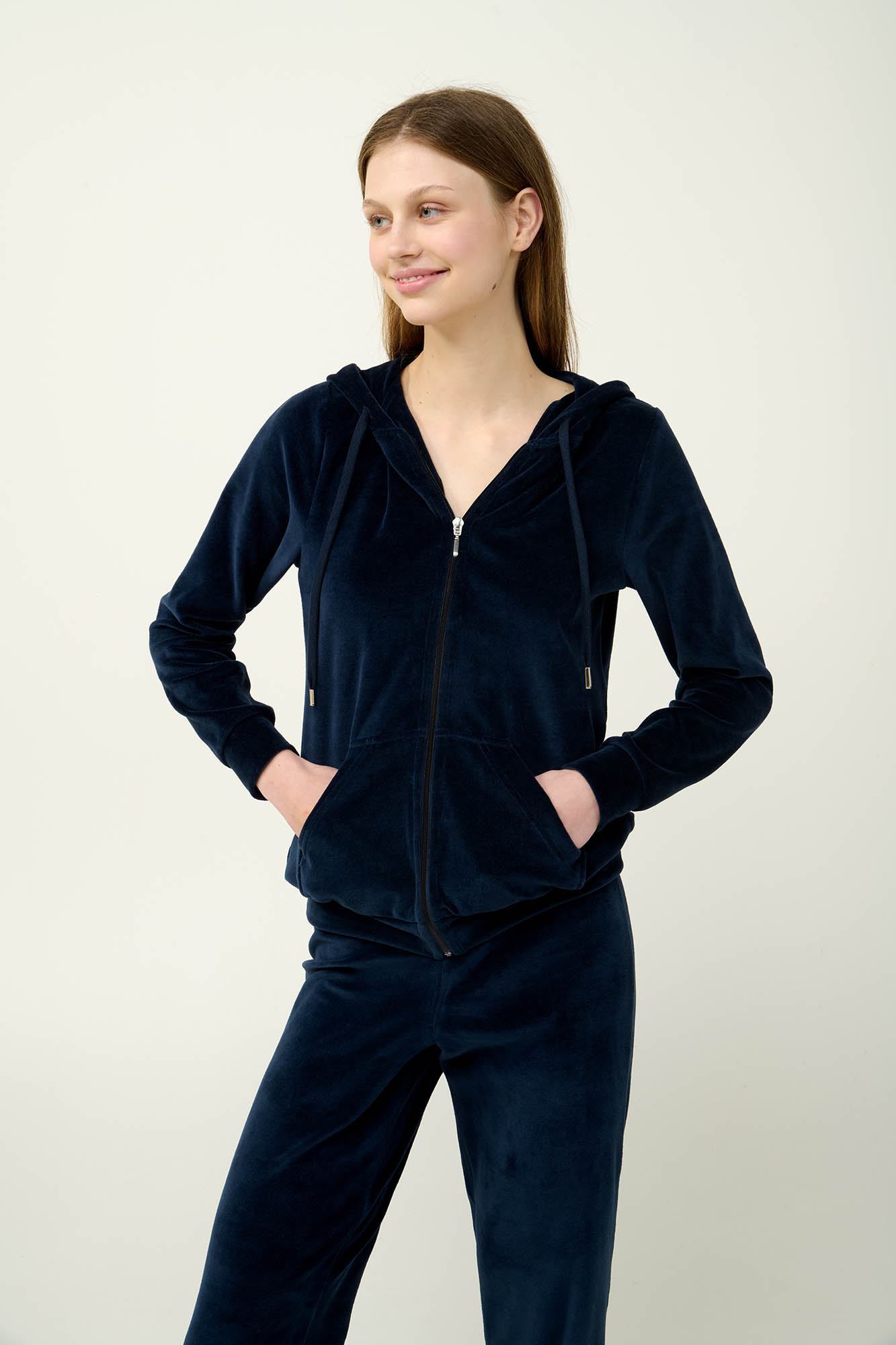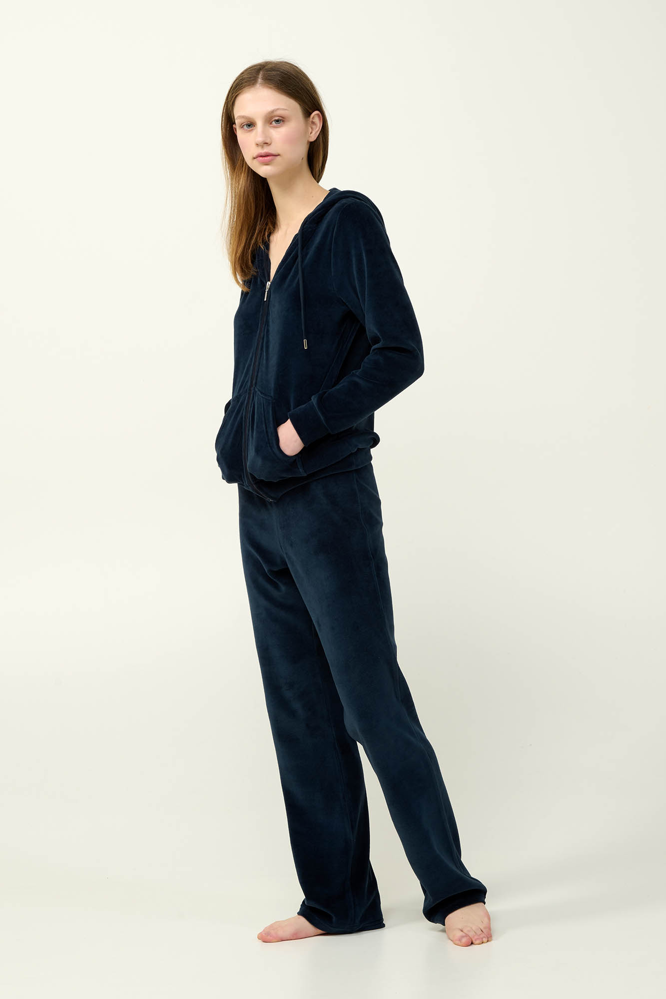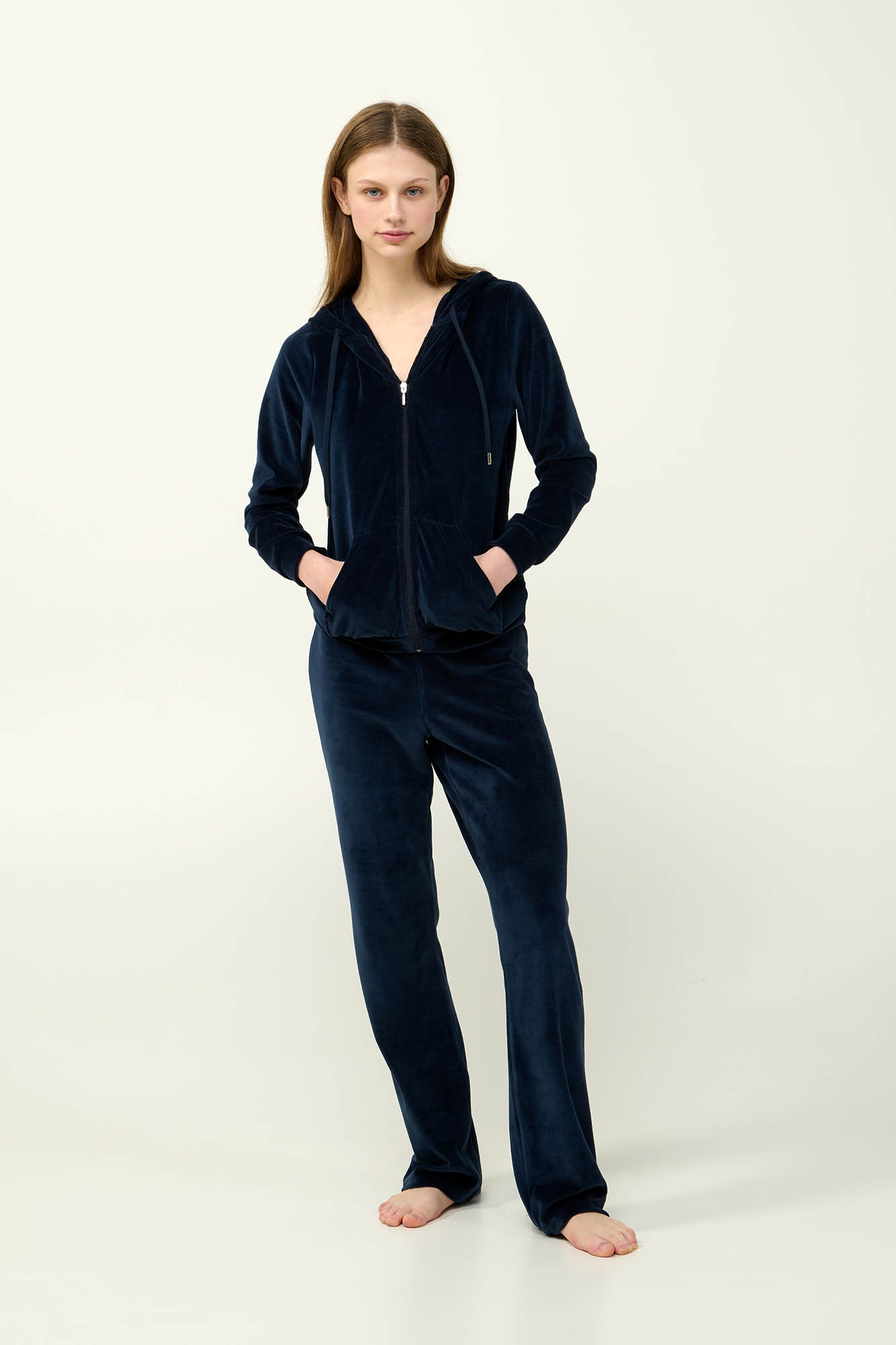 Ανανεώστε την γκαρνταρόμπα σας με αυτό το γυναικείο χειμερινό σετ φόρμας, κατασκευασμένο από βελούδο πλούσιο σε βαμβάκι για απαλή και πολυτελή υφή. Το πάνω μέρος είναι σχεδιασμένο με φερμουάρ, πλαϊνές τσέπες και διαθέτει κουκούλα, μακριά μανίκια με μανσέτες και λάστιχο στη μέση για βέλτιστη εφαρμογή. Μια ιδανική επιλογή για χαλάρωση στο σπίτι τις κρύες ημέρες ή casual εξόδους.