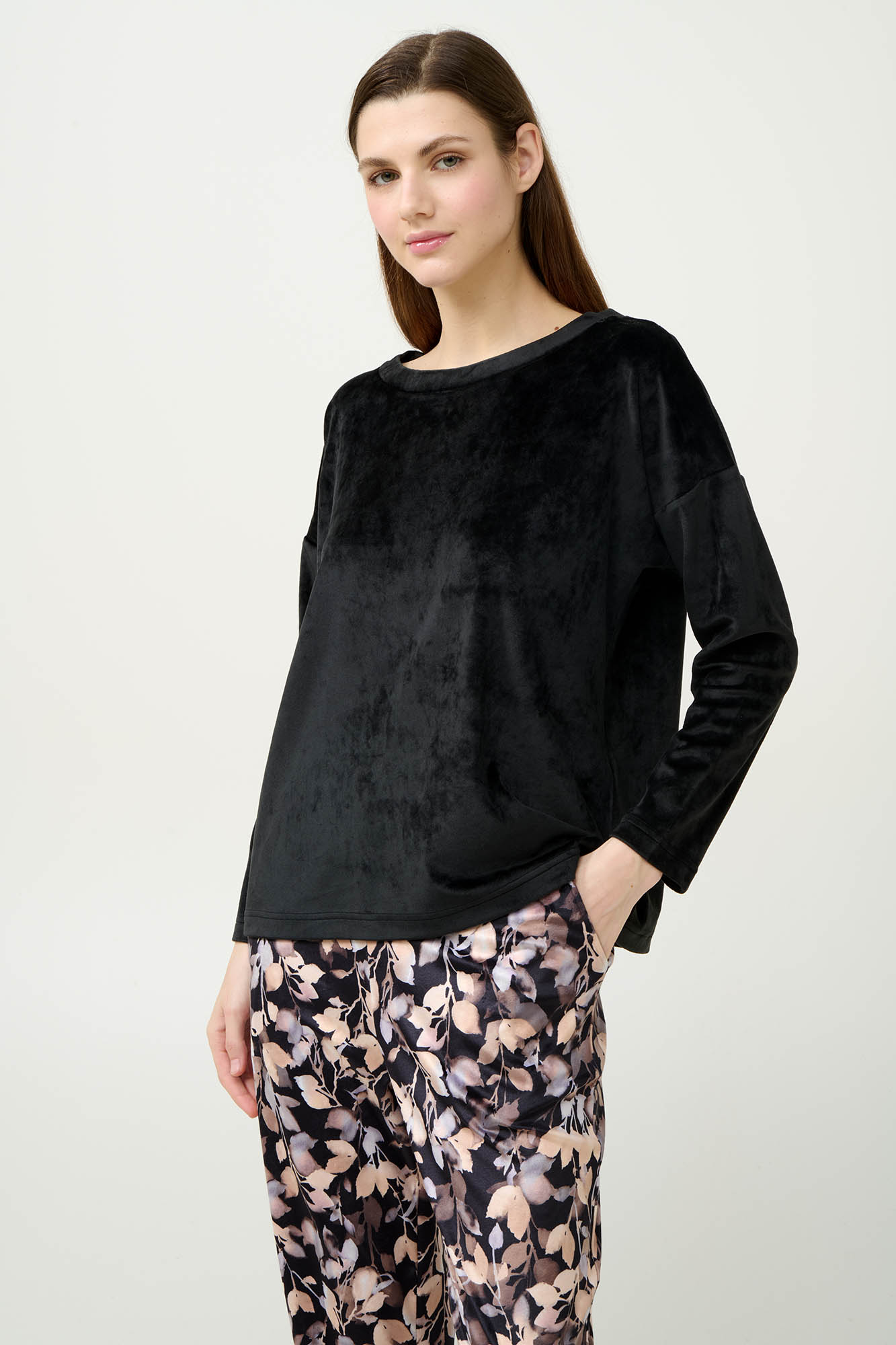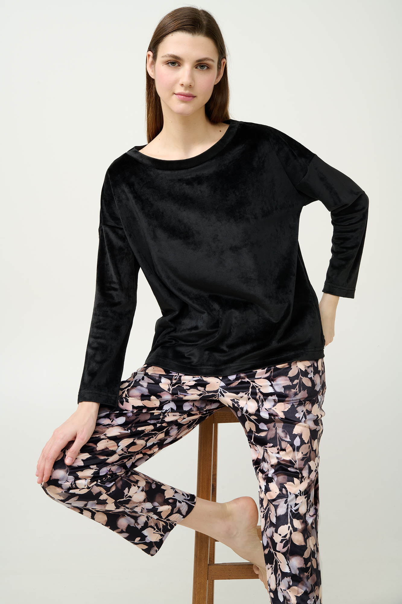 Προσθέστε στη γκαρνταρόμπα σας αυτό το σετ σπιτιού από απαλό, ελαστικό βελούδο. Αποτελείται από ένα παντελόνι με ονειρικό, φλοράλ μοτίβο ακουαρέλα σε ζεστές αποχρώσεις και μονόχρωμη μπλούζα με λαιμόκοψη χαμόγελο, που χαρίζει ισορροπία στο σύνολο. Απολαύστε τον πρώτο καφέ της ημέρας ή ένα χαλαρό απόγευμα με άνεση και κομψότητα.