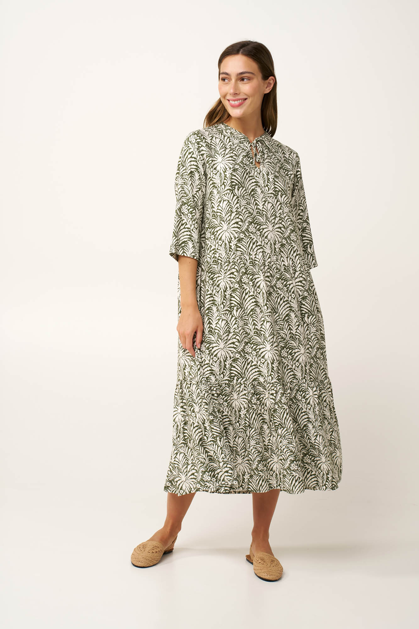Προσθέστε στην γκαρνταρόμπα σας ένα μακρύ καλοκαιρινό φόρεμα από 100% viscose ποπλίνα, με χαλαρή γραμμή που χαρίζει φυσική κίνηση σε κάθε σας βήμα. Διακοσμημένο με ένα jungle print ήπιων αντιθέσεων, που προσθέτει βάθος και ένταση — φυσικό αλλά ταυτόχρονα τολμηρό. Αποτελεί ιδανική επιλογή για ζεστές ημέρες στην πόλη ή τις διακοπές φέρνοντας άνεση και δροσιά στις καλοκαιρινές σας στιγμές.