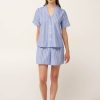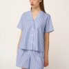 Αφεθείτε στην άνεση του καλοκαιριού με αυτό το γυναικείο σετ πυτζάμες από 100% βαμβακερή ποπλίνα, που χαρίζει δροσερή, διαπνέουσα και φυσικά δροσερή αίσθηση στο δέρμα. Αποτελείται από ένα κλασικό κουμπωτό τοπ και ένα κοντό παντελόνι και ειναι διακοσμημένο από ένα μοτίβο με απαλές παστέλ ρίγες που διακόπτονται διακριτικά από διασκορπισμένες κόκκινες καρδιές. Ιδανικό για ύπνο, χαλάρωση ή ήρεμα πρωινά στο σπίτι, αυτό το σετ συνδυάζει άνεση με ανάλαφρη, διάθεση.