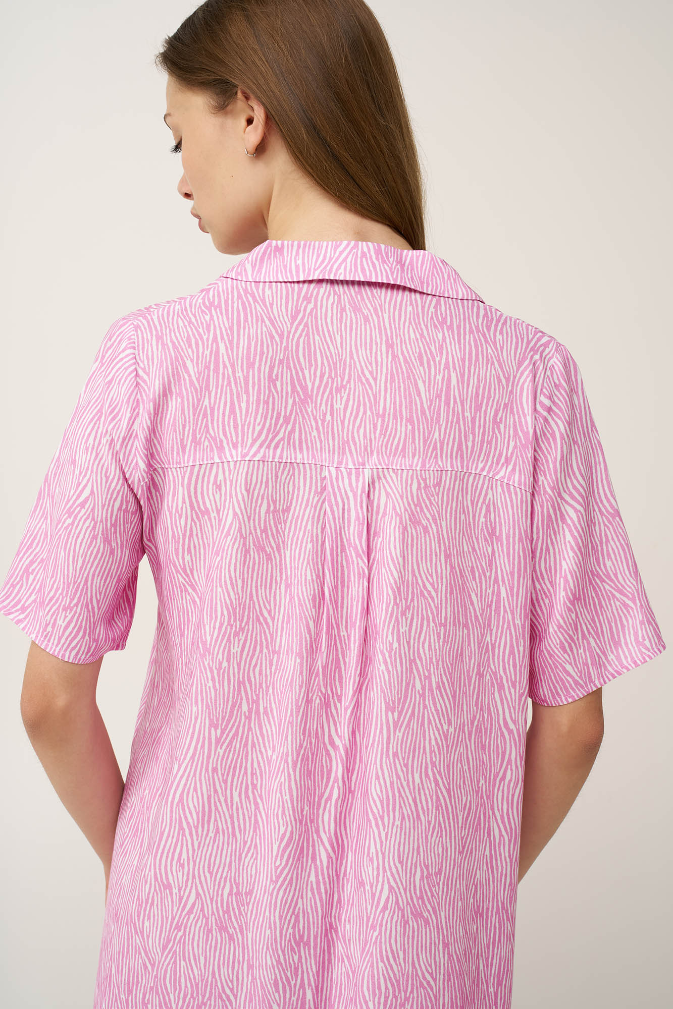 Προσθέστε στην γκαρνταρόμπα σας αυτό το κοντομάνικο νυχτικό, κατασκευασμένο από viscose ποπλίνα. Ελαφρύ και άνετο, είναι σχεδιασμένο για να σας κρατά δροσερή τις ζεστές ημέρες, προσφέροντας απαλή αίσθηση στο δέρμα. Το κλασικό κουμπωτό μπροστινό μέρος προσθέτει διαχρονικό χαρακτήρα, ενώ το σύγχρονο zebra-inspired μοτίβο χαρίζει μια ήπια, θηλυκή ζωντάνια. Κομψό χωρίς πρακτικό, αποτελεί ιδανική επιλογή για χαλάρωση στο σπίτι, ξεκούραστο ύπνο ή ήρεμα καλοκαιρινά βράδια όπου η άνεση είναι προτεραιότητα.