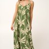 Αγκαλιάστε τις ηλιόλουστες ημέρες με αυτό το εντυπωσιακό maxi καλοκαιρινό φόρεμα από ποπλίνα, που προσφέρει απαλή υφή και διακριτική crinkle όψη. Οι λεπτές τιράντες και η V λαιμόκοψη χαρίζουν θηλυκότητα, ενώ η χαλαρή, χυτή γραμμή προσφέρει κίνηση σε κάθε σας βήμα. Διακοσμημένο με επιβλητικούς φοίνικες πάνω σε ηλιοκαμένη λαδί βάση, αποπνέει μια γήινη αλλά και δροσερή διάθεση. Ιδανικό για την πόλη ή τις διακοπές, προσθέτει μια διακριτική εξωτική νότα στην καθημερινότητα σας.