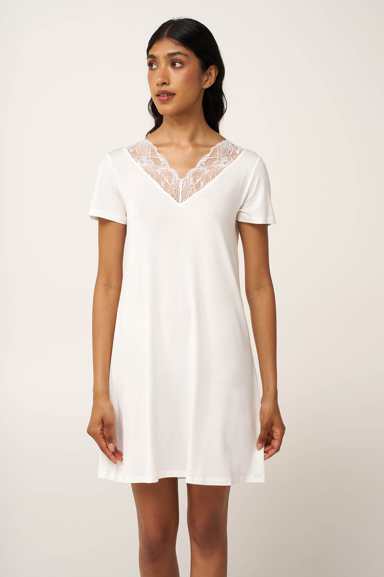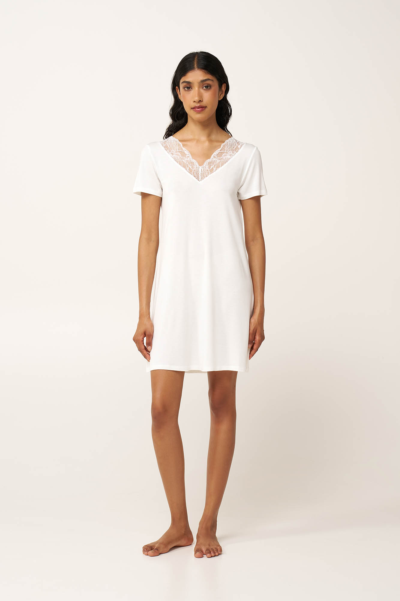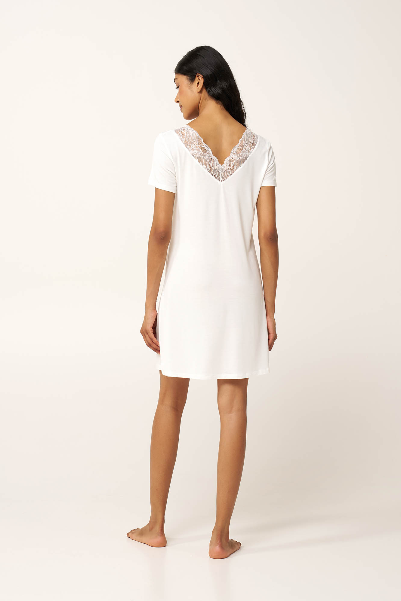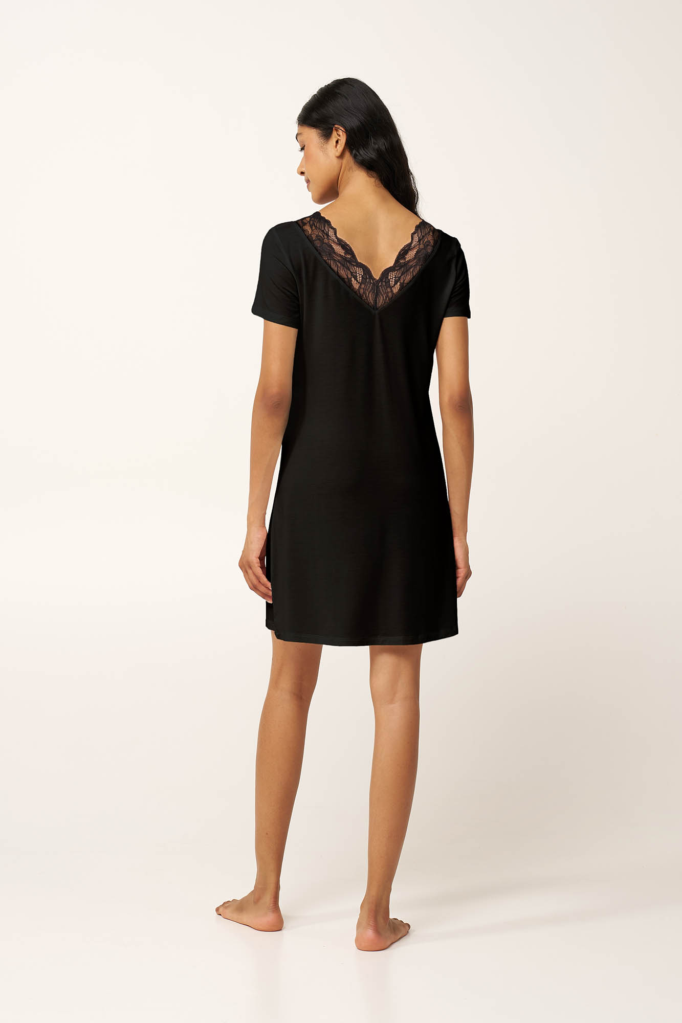 Ελαφρύ και ρευστό πάνω στο σώμα, αυτό το νυχτικό είναι κατασκευασμένο από LENZING Tencel Modal Micro, προσφέροντας δροσερή, διαπνέουσα άνεση κάθε στιγμή της ημέρας. Μονόχρωμο και κομψό, με V λαιμόκοψη μπροστά και πίσω, διακοσμημένη με δαντέλα που προσθέτει ρομαντισμό και θηλυκότητα στην εμφάνιση σας. Μια επιλογή με διαχρονικό χαρακτήρα που θα ντύσει χαλαρά απογεύματα και ήρεμες νύχτες.