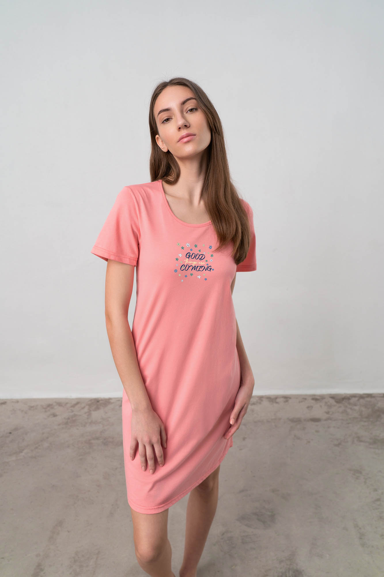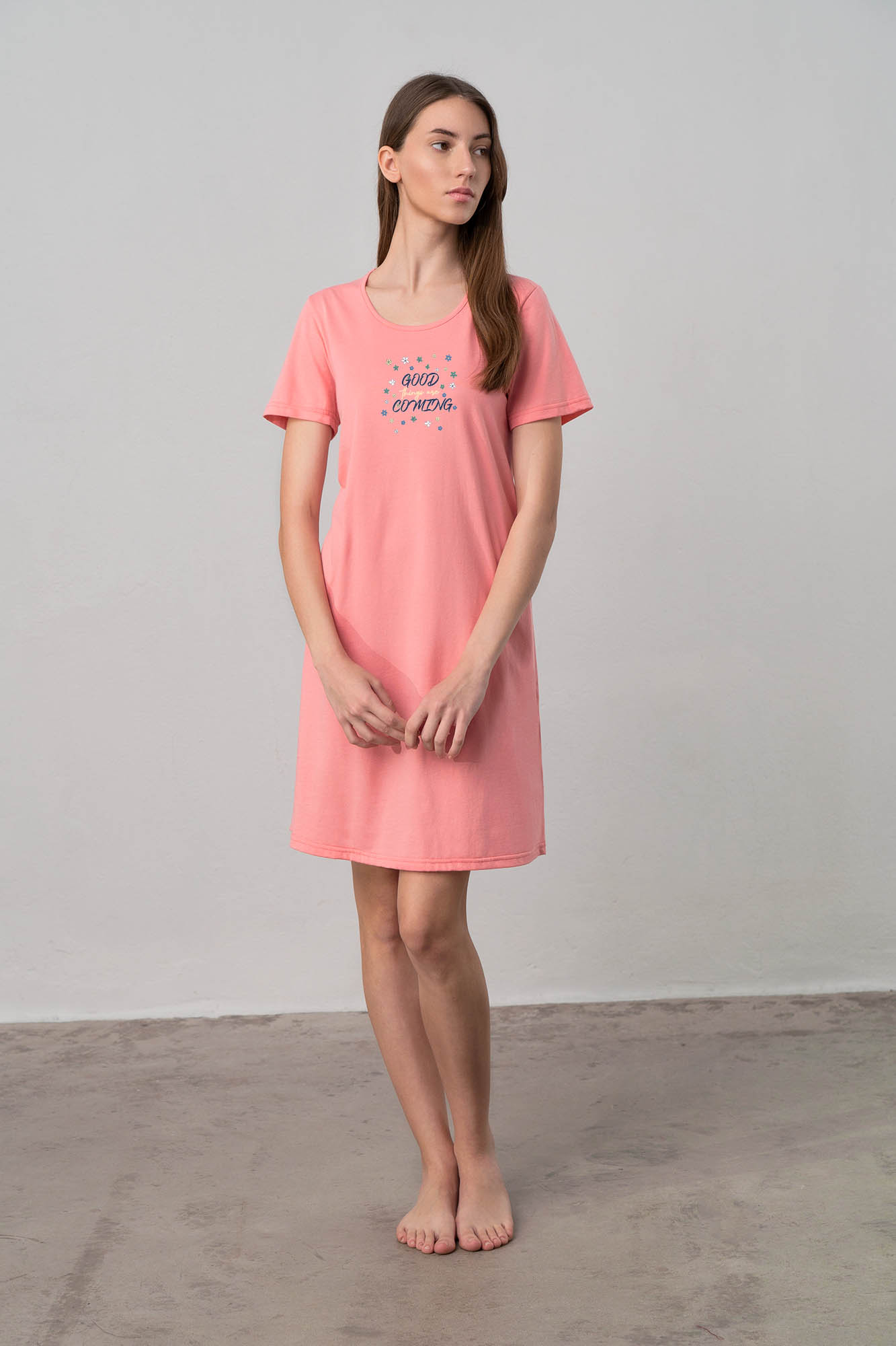 - Μονόχρωμο Νυχτικό με Κοντό Μανίκι