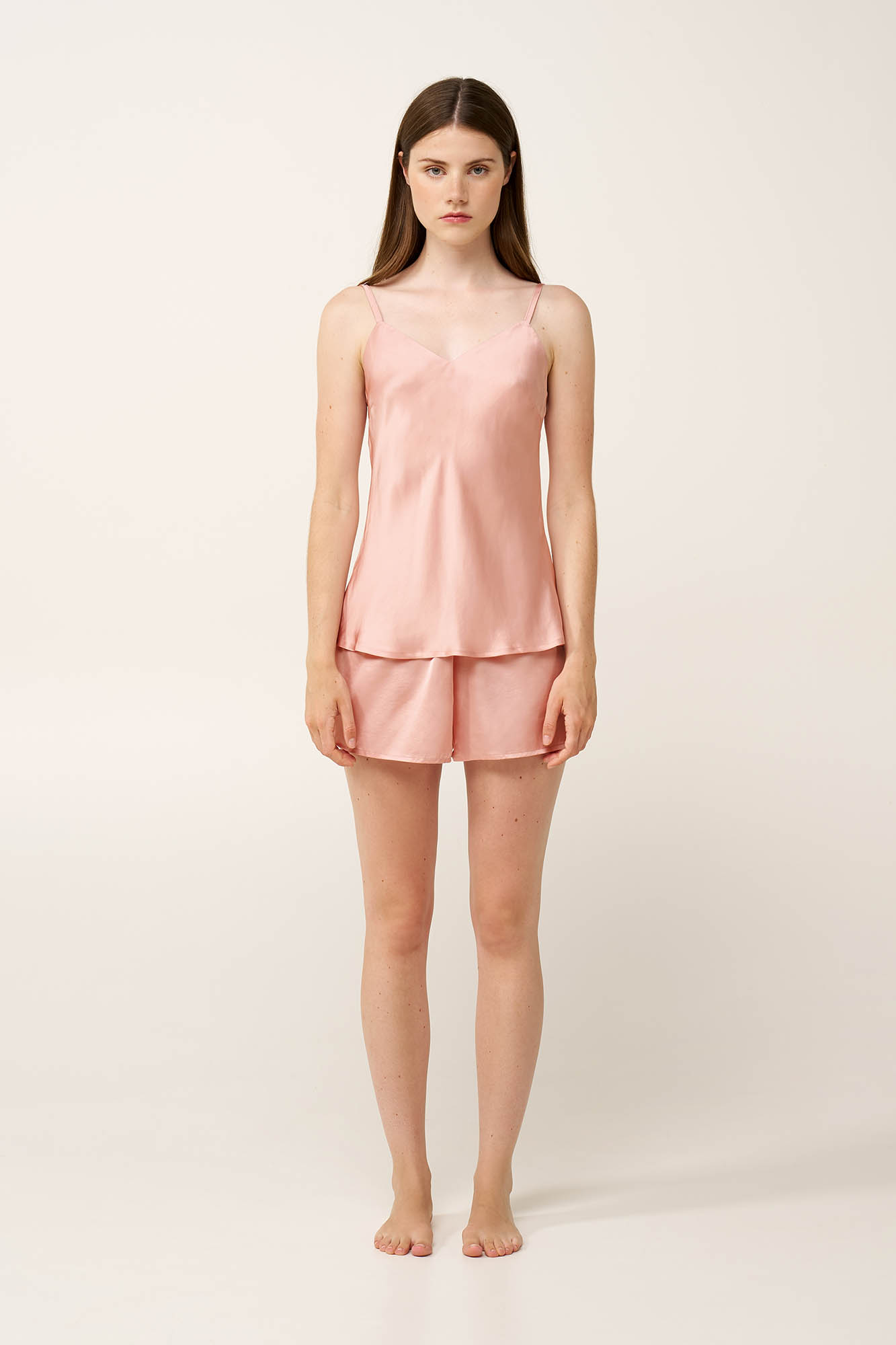 Αφεθείτε στην ανεπιτήδευτη θηλυκότητα που προσφέρει αυτό το baby doll από σατέν viscose, με εξαιρετικά απαλή αίσθηση στο δέρμα. Οι λεπτές τιράντες και η κολακευτική V λαιμόκοψη δημιουργούν μια κομψή και θηλυκή σιλουέτα, ενώ το ελαφρύ ύφασμα ρέει όμορφα, προσφέροντας μια εκλεπτυσμένη αλλά χαλαρή εμφάνιση. Συνδυασμένο με κοντό παντελόνι, το σετ ισορροπεί αρμονικά ανάμεσα σε αισθησιασμό και άνεση, καθιστώντας το ιδανικό για ζεστές καλοκαιρινές νύχτες. Ρομαντικό και διαχρονικό, έχει σχεδιαστεί για να σας χαρίζει αυτοπεποίθηση κάθε στιγμή.